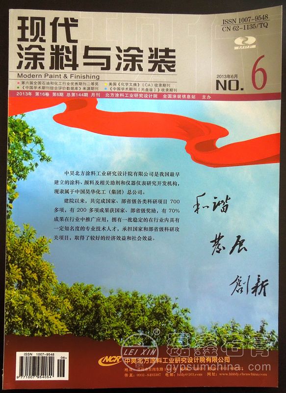 此文章已成功發(fā)表在《現(xiàn)代涂料與涂裝》雜志2013年6月第六期,未以書面同意不得轉(zhuǎn)載,違者必究!