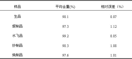 從測定結(jié)果來看其含量順序為水飛品>炒制品>生品>燒制品>煅制品。煅制是否在制備過程中使CaSO4·2H2O損失有待進一步研究。