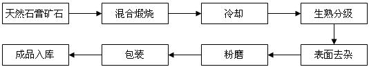進(jìn)入工業(yè)化生產(chǎn)后,生產(chǎn)工藝上仍然是基于傳統(tǒng)的加工原理將天然石膏礦石(生石膏,主要成分為二水硫酸鈣)直接與一定量的煤和木材等燃料混合煅燒,具體工藝流程是通常采用立面半開口頂面全開口的土法石灰窯;一層煤及其它燃料一層未清洗的石膏原礦間隔堆滿整個窯體后在頂面蓋上鐵板罩子;從窯體下底火道點(diǎn)火引燃煤及其它燃料,待煤及其它燃料燃盡自然冷卻后,采用人工將煅燒后的石膏礦石與煤渣等雜物分離出窯;然后繼續(xù)采用人工對出窯后塊狀石膏進(jìn)行生熟分級、表面去雜等工序后進(jìn)行粉磨、包裝而成。