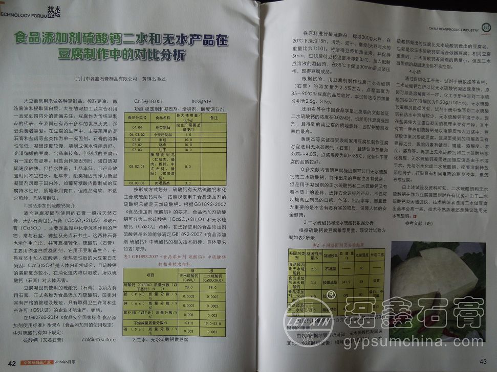 眾多文獻(xiàn)均表明豆腐凝固劑可選用無水硫酸鈣或二水硫酸鈣,制作出來的豆腐也各有優(yōu)劣,但是用于凝固劑的無水硫酸鈣和二水硫酸鈣又有著本質(zhì)上的差異,選擇安全達(dá)標(biāo)的產(chǎn)品,不僅可以提高豆制品的口感、色澤、出品率等,而且最為重要的是不含有毒有害的物質(zhì),保障人體的安全健康。