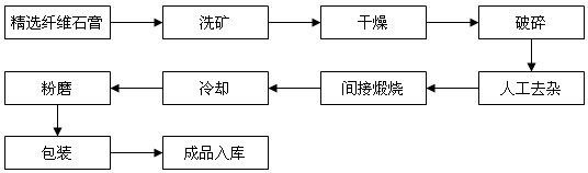 現代工藝生產無水硫酸鈣時將天然石膏礦石(生石膏,主要成分為二水硫酸鈣)通過間接煅燒的方式將煤與礦石原料分離開來,精確控制溫度、濕度、壓強等因素,待二水硫酸鈣中的結晶水完全脫水變?yōu)闊o水硫酸鈣以后,再對物料進行冷卻、粉磨、風選等后序加工而成。