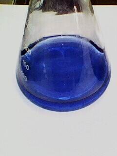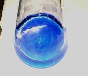 在表中可以很直觀的看出在滴定終點時要應(yīng)注意:當(dāng)?shù)味ㄒ喝缦聢D顏色的時候,操作者誤認為已經(jīng)到滴定終點了,實際上這其實是反應(yīng)完成99%的顏色,因此會引起最后檢驗結(jié)果的偏小。反之,當(dāng)操作者多滴2滴時,溶液將會變成亮藍色,這又會造成檢驗結(jié)果的偏大。