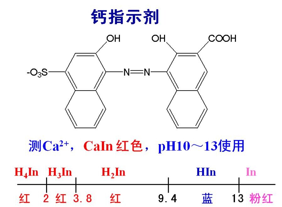 主要的原因是由于用EDTA測定Ca2+的濃度時,是以鈣試劑做為指示劑屬于偶氮染料,它是四元弱酸,其離解方程式如下: